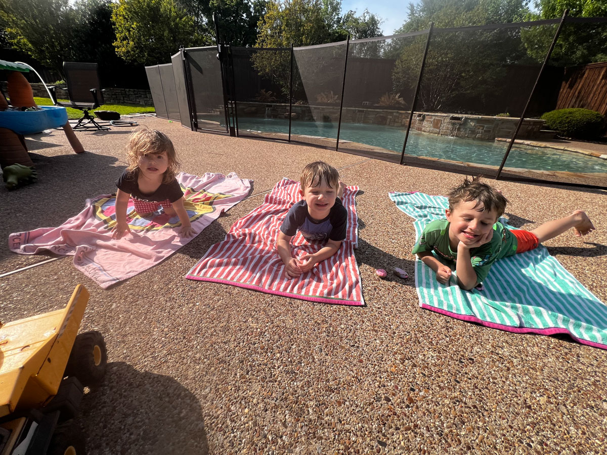Kids are loving the warm weather and hanging out, playing with the hose and the water table.