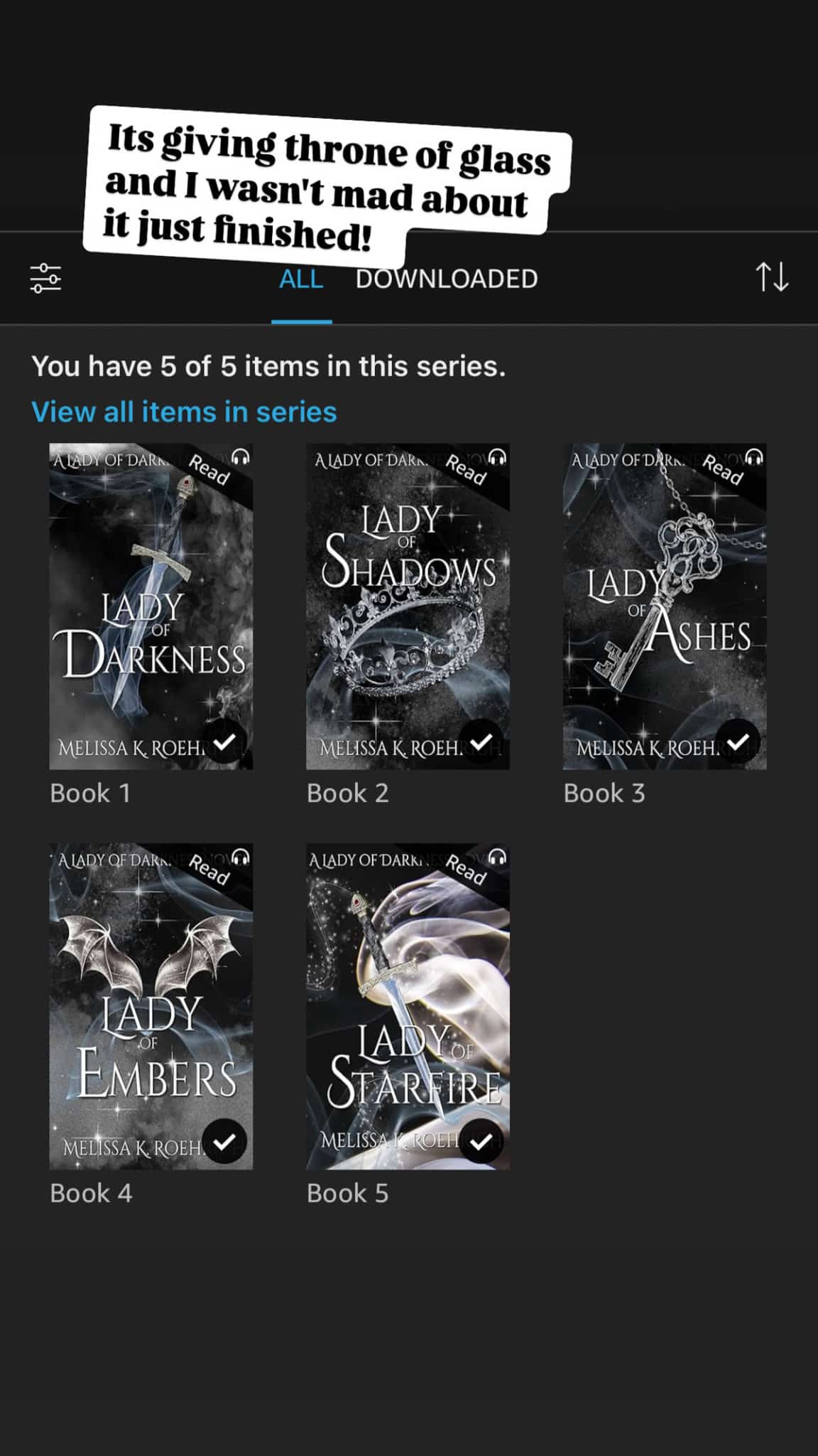 I finished this series, and to me, it was very similar but not as drawn out as the Throne of Glass series. I give it an 8 out 10. Definitely a slow burn on the romance side in the beginning, though. (Link to my romantasy favorites.)