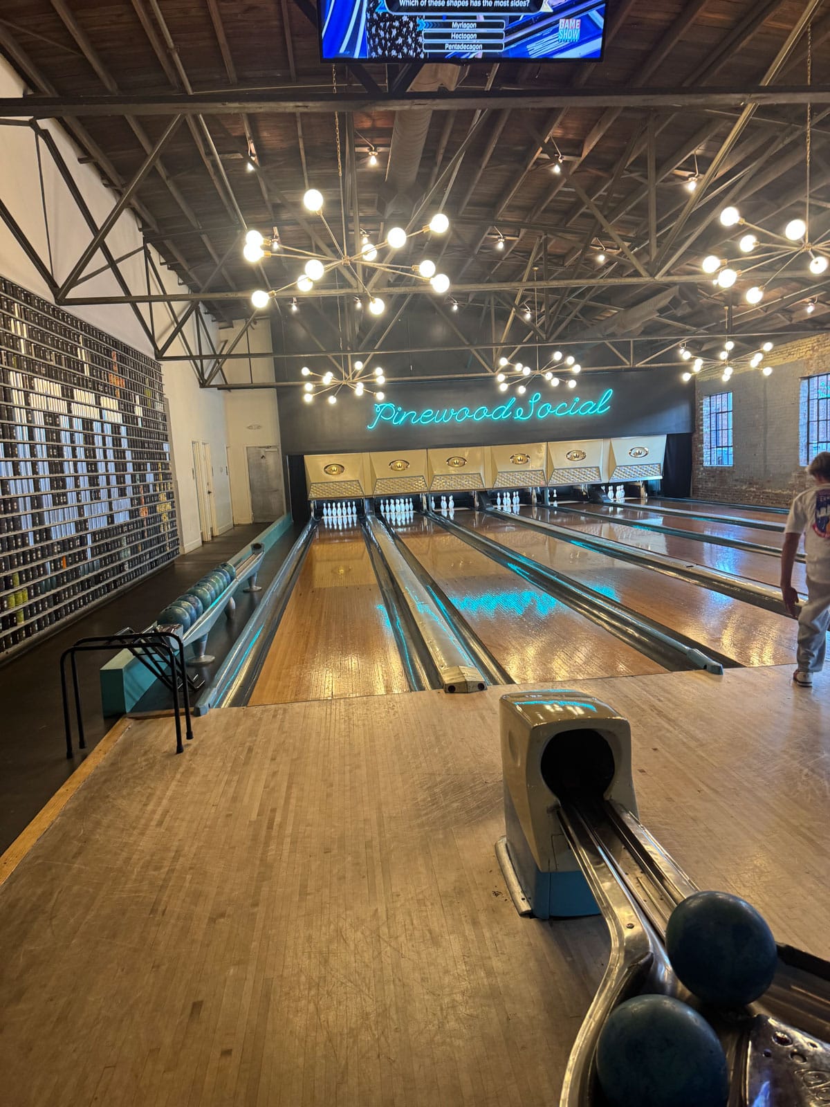 This was such a cool spot! It was bowling and a bar in the same place. The drink below was a mezcal drink with a wine floater, so fun!